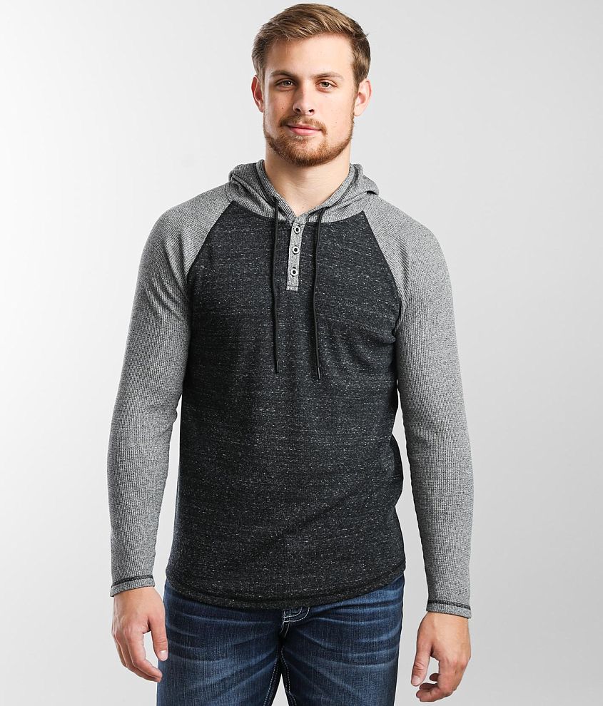BKE Pieced Thermal Henley Hoodie Men's Sweatshirts in Jet Black Buckle